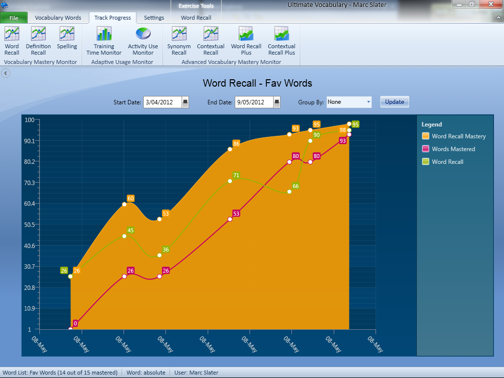 Ultimate Vocabulary uses cutting-edge technology to track your progress and adapt each exercise to your individual needs. Any time you do anything in Ultimate Vocabulary, the software tracks your activity. Ultimate Vocabulary then uses this information to customize your learning for maximum results. Not only will you learn faster, you’ll also be motivated as you see yourself improving.