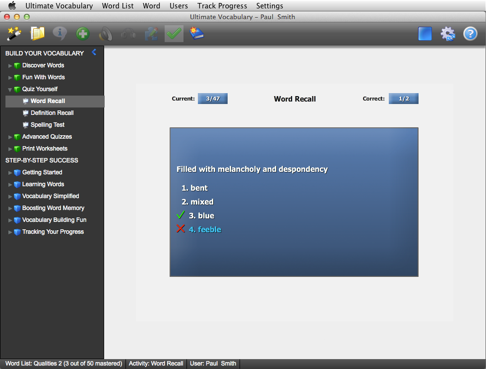 Your personal coach takes you by the hand and helps you at every step. Vocabulary building is now easy for everyone.