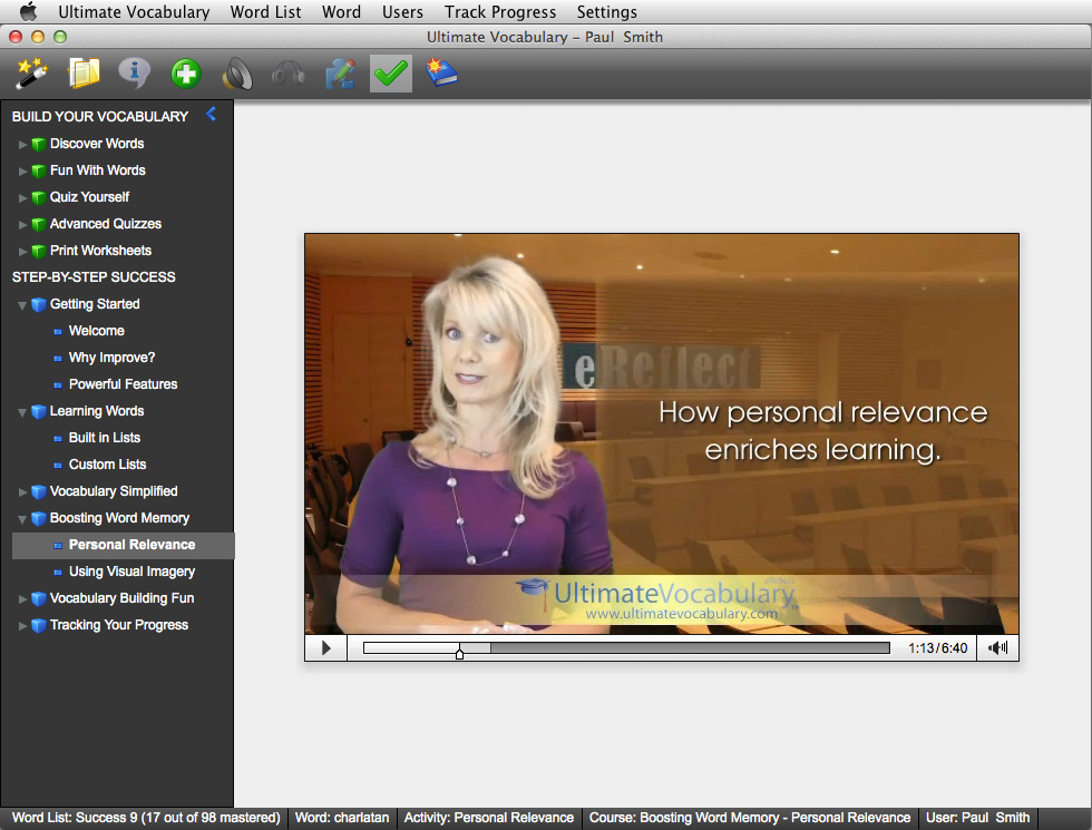 Your personal coach takes you by the hand and helps you at every step. Vocabulary building is now easy for everyone.